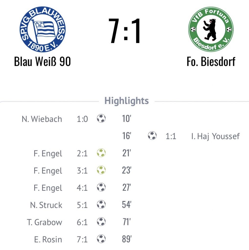 Beste Saisonleistung: 7-1 gegen VfB Fortuna Biesdorf!